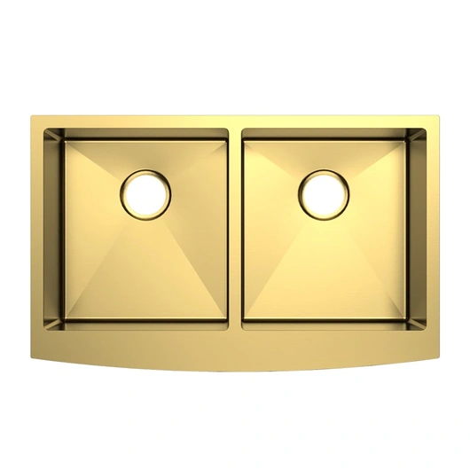 ساحة المزرعة الأمامية الذهب وعاء مزدوج بالوعة المطبخ الفولاذ المقاوم للصدأ